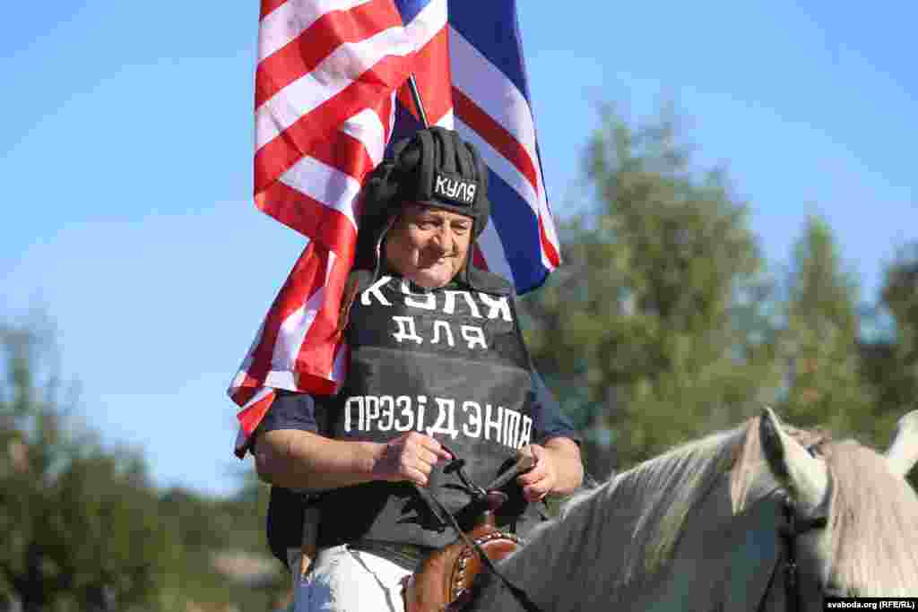 Уладзімер Падгол быў у бронекамізэльцы і танкісцкім шаломе з надпісам «Куля для прэзыдэнта», Алесь Таўстыка — у камуфляжнай камізэльцы і касцы.