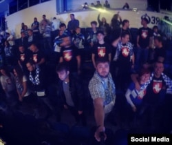 На чарговы матч Кантынэнтальнай хакейнай лігі — «Дынама-Менск» супраць «Слована-Браціславы» — група заўзятараў прыйшла ў цішотках з «Пагоняй», нягледзячы на ранейшыя затрыманьні, магчыма, зьвязаныя з нацыянальнай сымболікай.