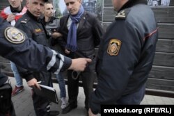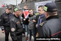 У пікетоўцаў перапісалі пашпартныя зьвесткі пратэстоўцаў, склалі пратакол на сустаршыню БХД Паўла Севярынца.