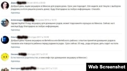 Між тым праз сацыяльныя сеткі за месяц да родаў Вольга шукала акушэрку «зь Віцебску ці Віцебскага раёну з досьведам прыманьня хатніх родаў».