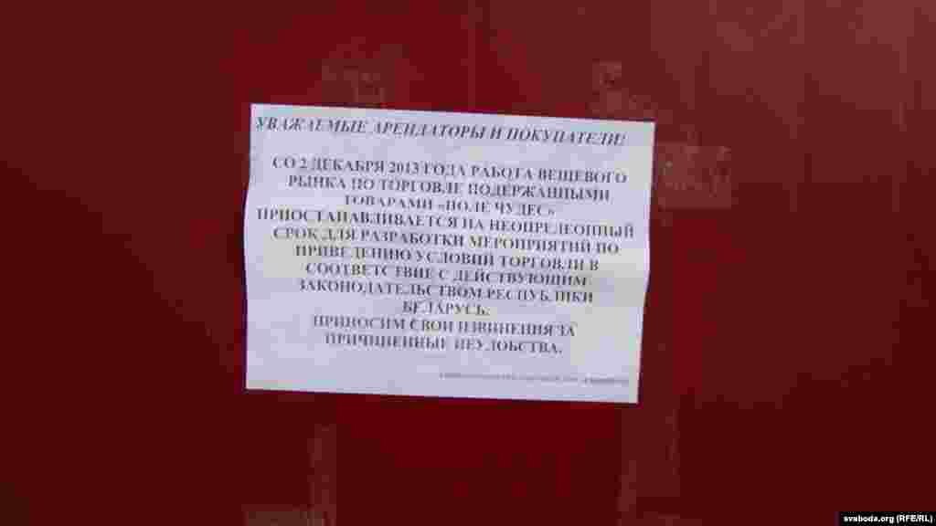 Адміністрацыя гандлёвага дому «Ждановічы» прадпісала гандлярам так званага «Поля цудаў» вызваліць тэрыторыю.
