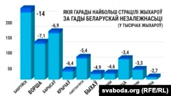 Бабруйск, Ворша, Барысаў ды іншыя гарады, дзе жыхарства меншае