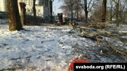 І такая праблема, што яны так могуць кожную раніцу прыяжджаць, па 2-3 дрэвы сьпілоўваць, а потым зьяжджаць, як сёньня. Так да Новага году якраз могуць пасьпець. Заказчыку прапаноўвалі далей будаваць, там меней дрэваў, але не — яны хочуць тут, на горцы».