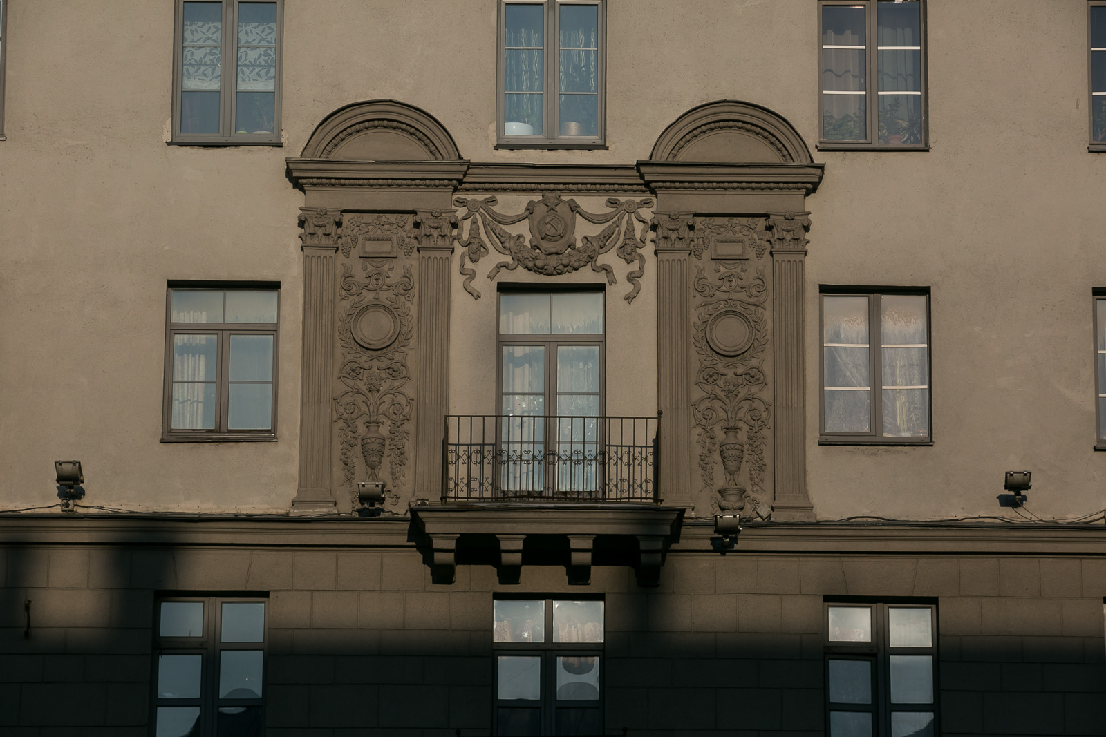 «Фасад — гэта старамоднае імкненьне на роўных устаць з дойлідамі мінулага, — кажа Георгі. — Сёньня мы можам стаць на роўных, сказаўшы: „Я ня зьнішчыў гістарычны фасад і таму я круты“. Прысвой сабе фасад тым, што ты яго выратаваў, а ня тым, што зьнёс. Чаму ўвесь сьвет так умее, а мы — не?»