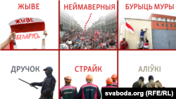 Слоўнік рэвалюцыі — і пра сьветлае, і пра змрочнае, бо мова апісвае рэальнасьць. А вярнуцца ў атмасфэру тых дзён і месяцаў дапаможа цыкль падкастаў Радыё Свабода „Красаўцы“.