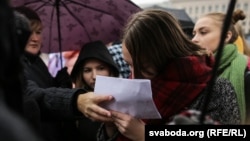 Да помніка Леніну прыйшлі і студэнты дзяржаўных ВНУ, якія потым расьпісваліся ў дакумэнтах за ўдзел у акцыі.