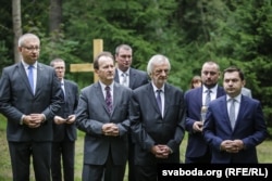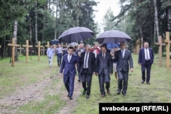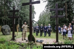 Палітыкі ўсклалі вянкі, запалілі сьвечкі і памаліліся каля крыжоў, усталяваных у памяць закатаваных палякаў, а таксама ўсіх ахвяраў сталінскіх рэпрэсіяў у Беларусі.