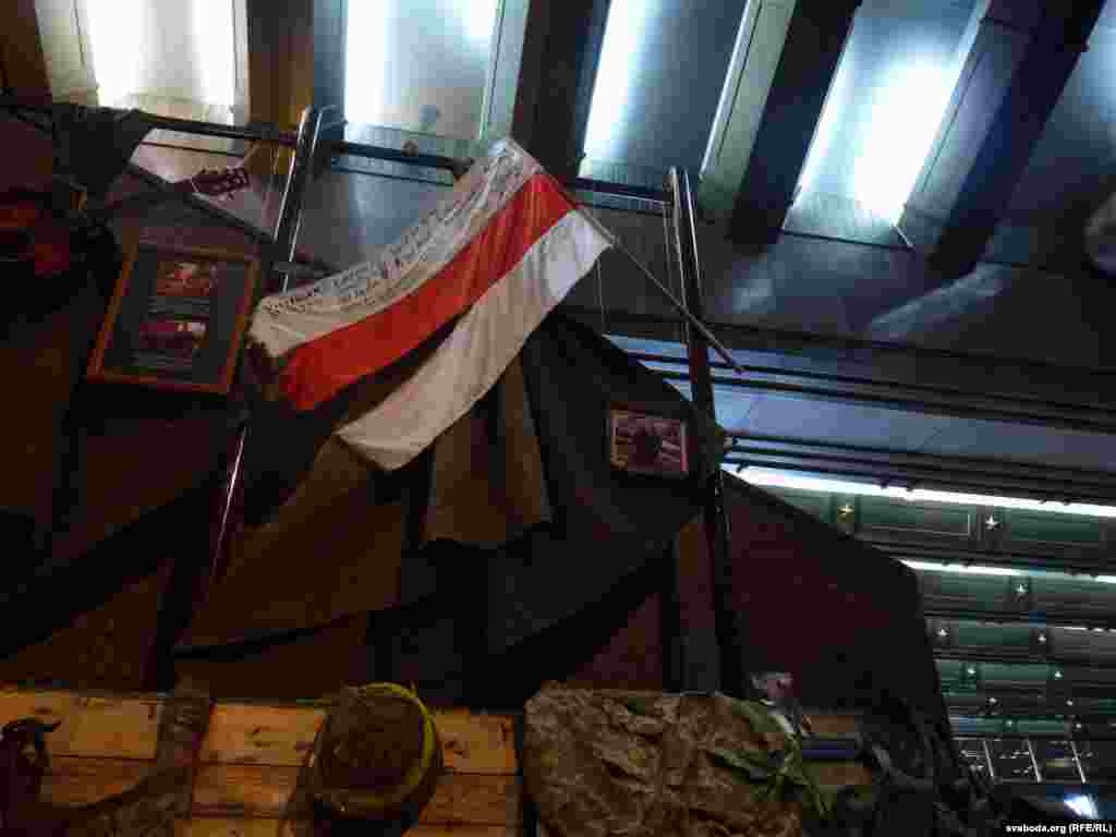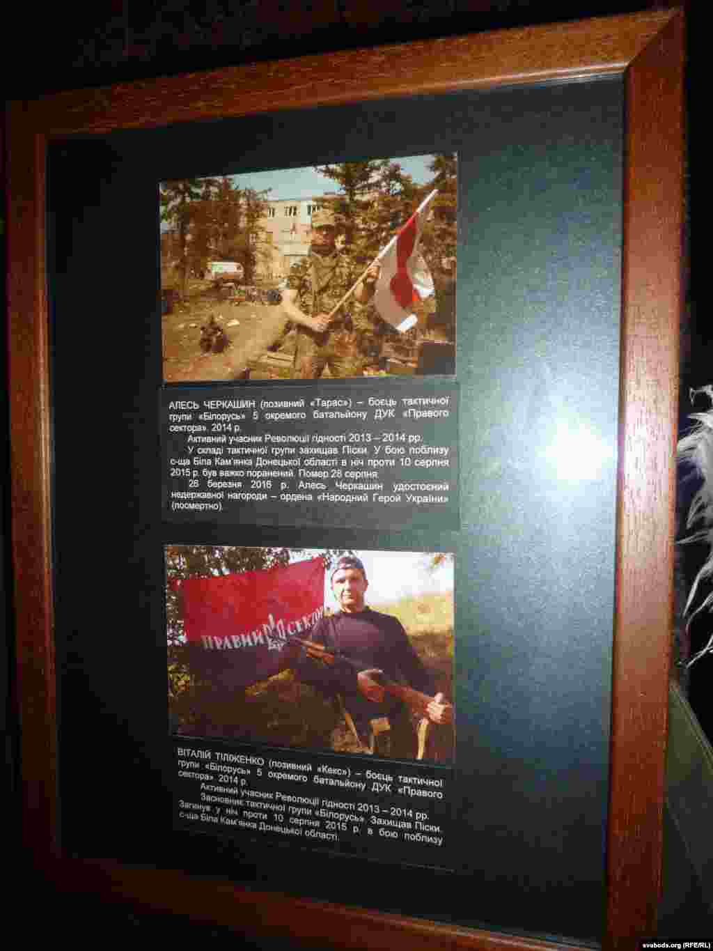У экспазыцыі, прысьвечанай вайне на ўсходзе Ўкраіны, знаходзяцца рэчы загінулых жаўнэраў тактычнай групы «Беларусь», сярод якіх бронекамізэлька з крывёй Віталя Ціліжэнкі. Ёсьць тут і бел-чырвона-белы сьцяг, які лунаў над царквой вёскі Пяскі.