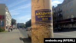 У шмат якіх мясьцінах Баранавічаў зьявіліся налепкі з заклікам выйсьці на Кастрычніцкую плошчу ў Менску 12 верасьня.