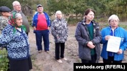 «Мы тут сабралі подпісы пад скаргай да Аляксандра Лукашэнкі, —— кажа былая працаўніца чыгункі Ніна Сердзюкова. — Ён жа зямлю любіць, можа, і нам дапаможа, каб не выганялі нас з гэтага лапіка зямлі».
