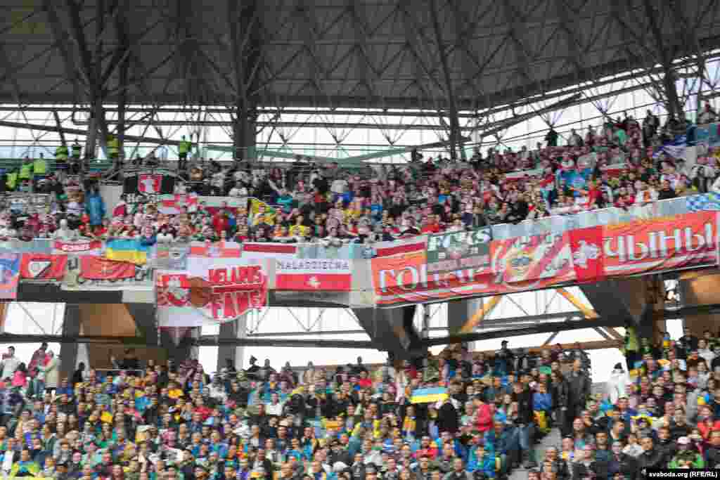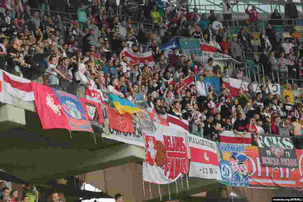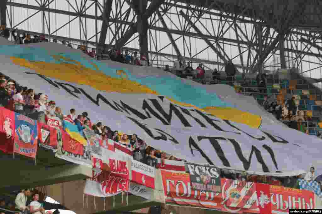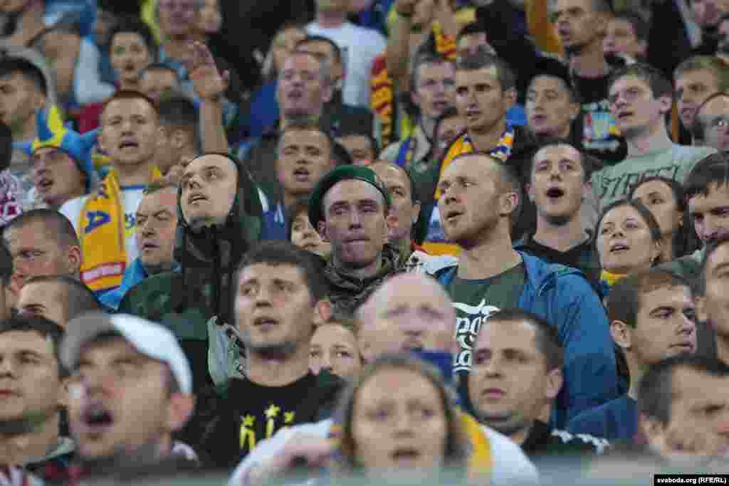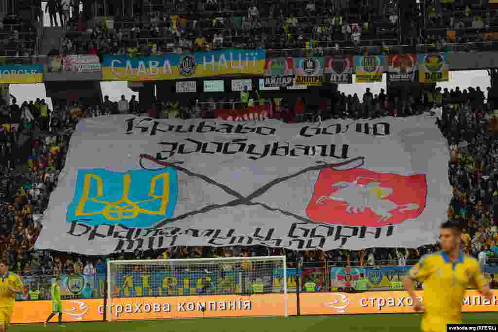 Сёньня ў Львове зборная Беларусі гуляла матч адборачнага этапу Чэмпіянату Эўропы па футболе 2016 года. Яшчэ задоўга ўвага да гэтага матчу была прыцягнутая менавіта праз фанатаў. Як і чакалася, нават супрацьлеглыя сэктары маюць агульныя крычалкі. Матч завяршыўся лікам 3:1 на карысьць Украіны. Украінская зборная мела перавагу цягам усёй гульні. Нягледзячы на гэта, атмасфэра на трыбунах была сяброўская. Бальшыня сьцягоў на трыбунах — украінскія жоўта-блакітныя, і беларускія — бел-чырвона-белыя.