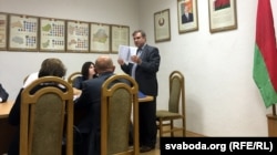 Спадар Падгол на абвінавачваньне Есьмана, што пікет быў несанкцыянаваны, паказаў здымкі з акцыі, якую ён правёў каля Менгарвыканкаму і якая так і называлася: «Шорацу пакет, заяўкі на пікет».