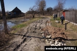 «Палову дарогі падсыпалі, другую так і кінулі. Ні прайсьці ні праехаць, вось так і пакутуем», — скардзіцца вясковец. Наш гід Іван падтаквае — дарога дрэнь, улада нічога ня робіць. А потым заўважае: «Слухай, мост мы зрабілі ж, можа і дарогу зробім? А што? Я дам 50 рублёў з пэнсіі, дам, кажу табе!»