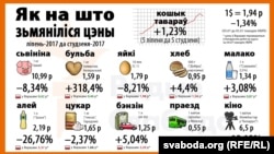 На чэрвень 2017 году спажывецкія цэны ўжо вырасьлі адносна ўзроўню сьнежня-2016 на 3,4%, а цэны вытворцаў прамысловай і сельскагаспадарчай прадукцыі — на 7,3% і 4,7% адпаведна. За 2016 год інфляцыя склала 11,8% (амаль як ва Ўкраіне), за 2015 — 13,5%.
