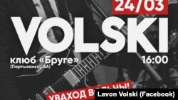 Сьпявак Лявон Вольскі выступіць у менскім клюбе «Бруге» 24 сакавіка, канцэрт ён прысьвеціць 100-й гадавіне абвяшчэньня незалежнасьці Беларускай Народнай Рэспублікі.