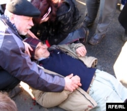 Кандыдат у прэзыдэнты Ўладзімер Някляеў пасьля зьбіцьця на вуліцы Калектарнай, 19 сьнежня 2010 году