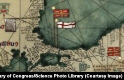 Картограф так абазначыў генуэскую калёнію Galata над затокай Залаты Рог (рэха — у назьве стамбульскай футбольнай каманды «Галатасарай»).