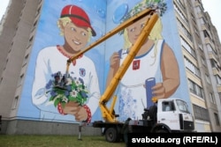 Малюнак на сьцяне дома на менскай вуліцы Магілёўскай, 32, невядомыя пазбаўляюць ананімных «дапрацовак».