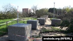 Будоўля «праглынула» ўжо і адгалінаваньне роварнай дарожкі. Раварысты тут яшчэ езьдзяць, але відаць, што фінішу чакаць нядоўга. За дарожкай чалавек у будаўнічай робе ўжо разьбірае тратуарную плітку. Значыць, будоўля разрасьцецца яшчэ мэтраў на 20–50 у напрамку пляжу.